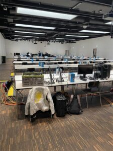 Bereits am Freitag begannen die Vorbereitungen mit enormer Mithilfe des Hausdienstes der FH. Es wurden hunderte Meter Kabel verlegt, dutzende Stromleisten sowie 120 Tische und Stühle bereitgestellt. Am Samstag morgen begannen die Vorbereitungen auch recht früh mit der Einrichtung des Saales und der Bar.